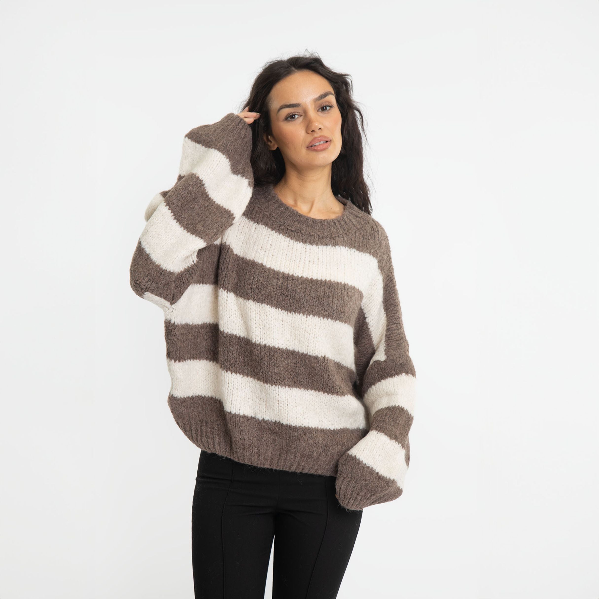 Bringen Sie Farbe in Ihre Garderobe mit unserem gestreiften Pullover