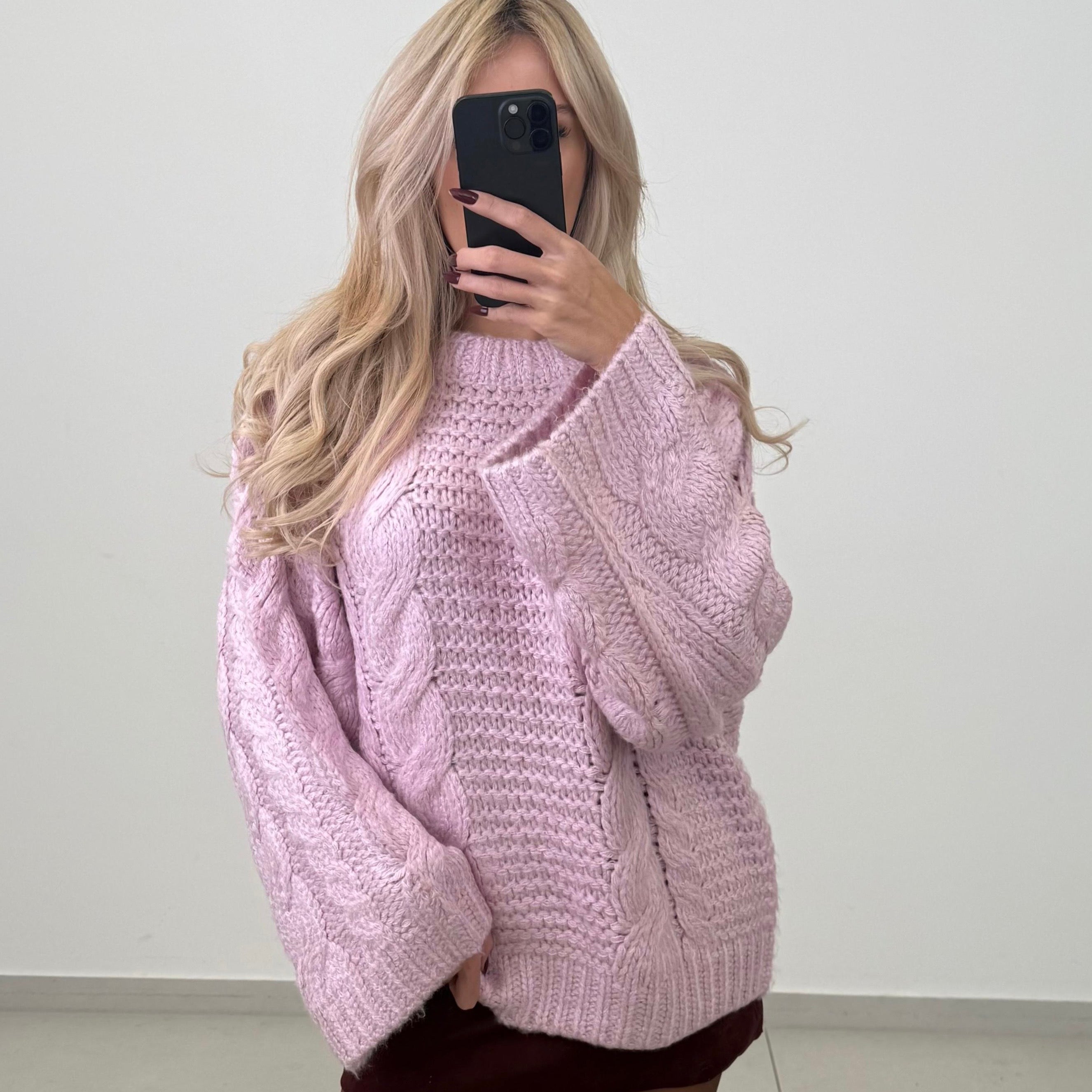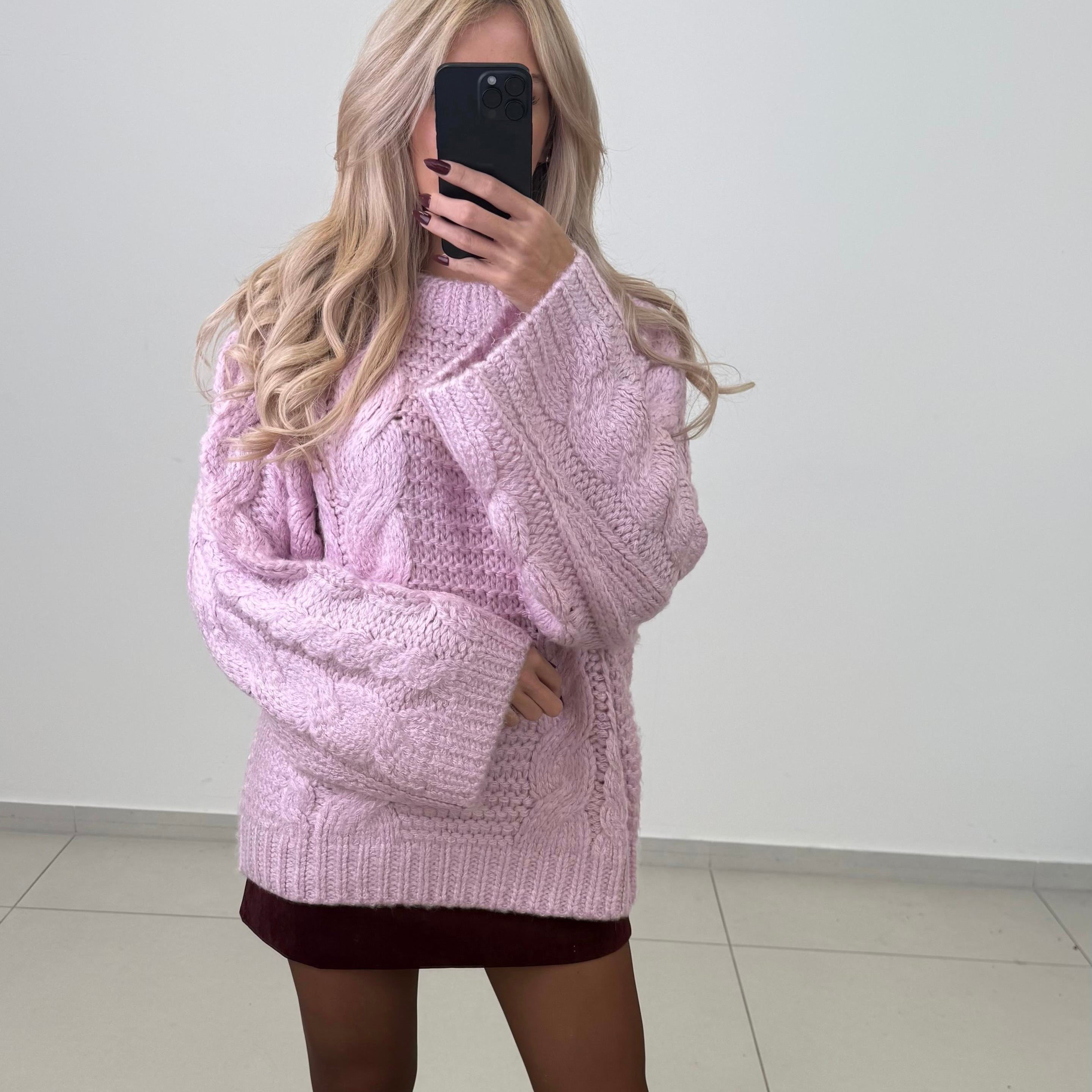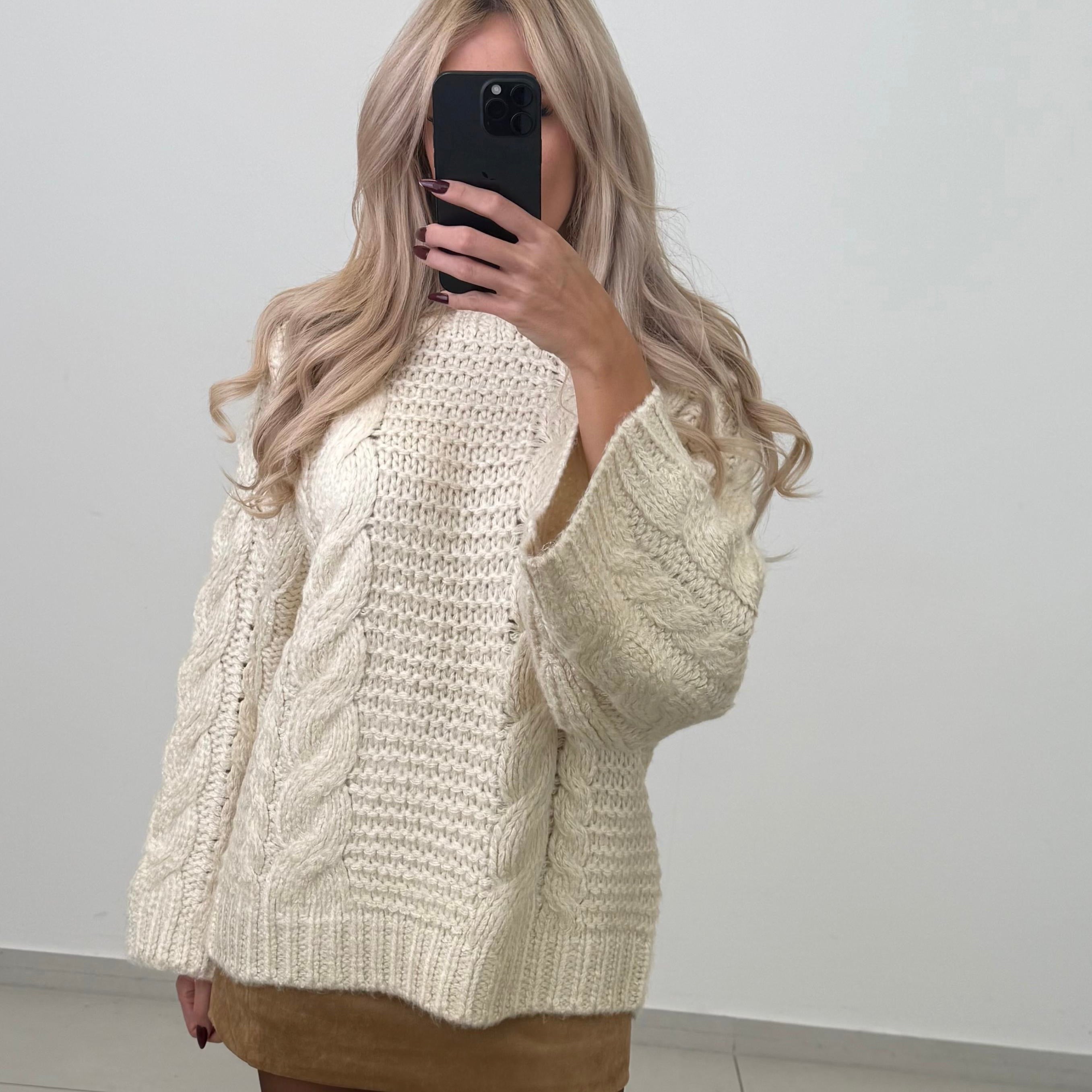 Unser Handmade Zopfmuster Pullover ist ein liebevoll von Hand gefertigter Strickpullover mit aufwendig gearbeiteten Rosen-Details.