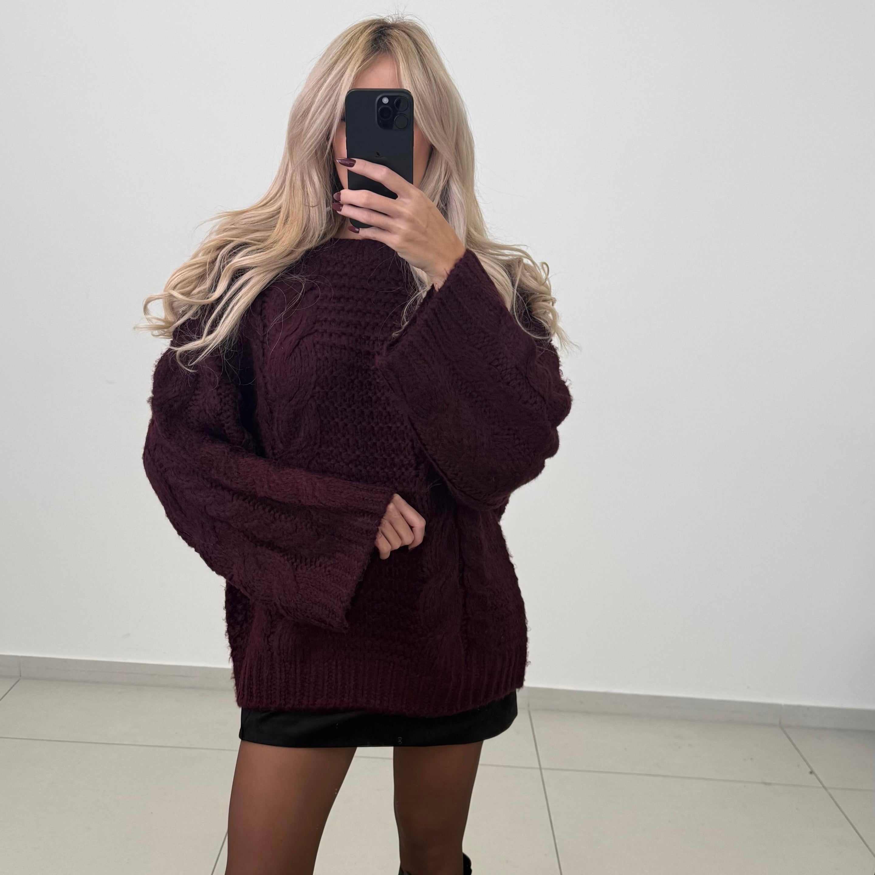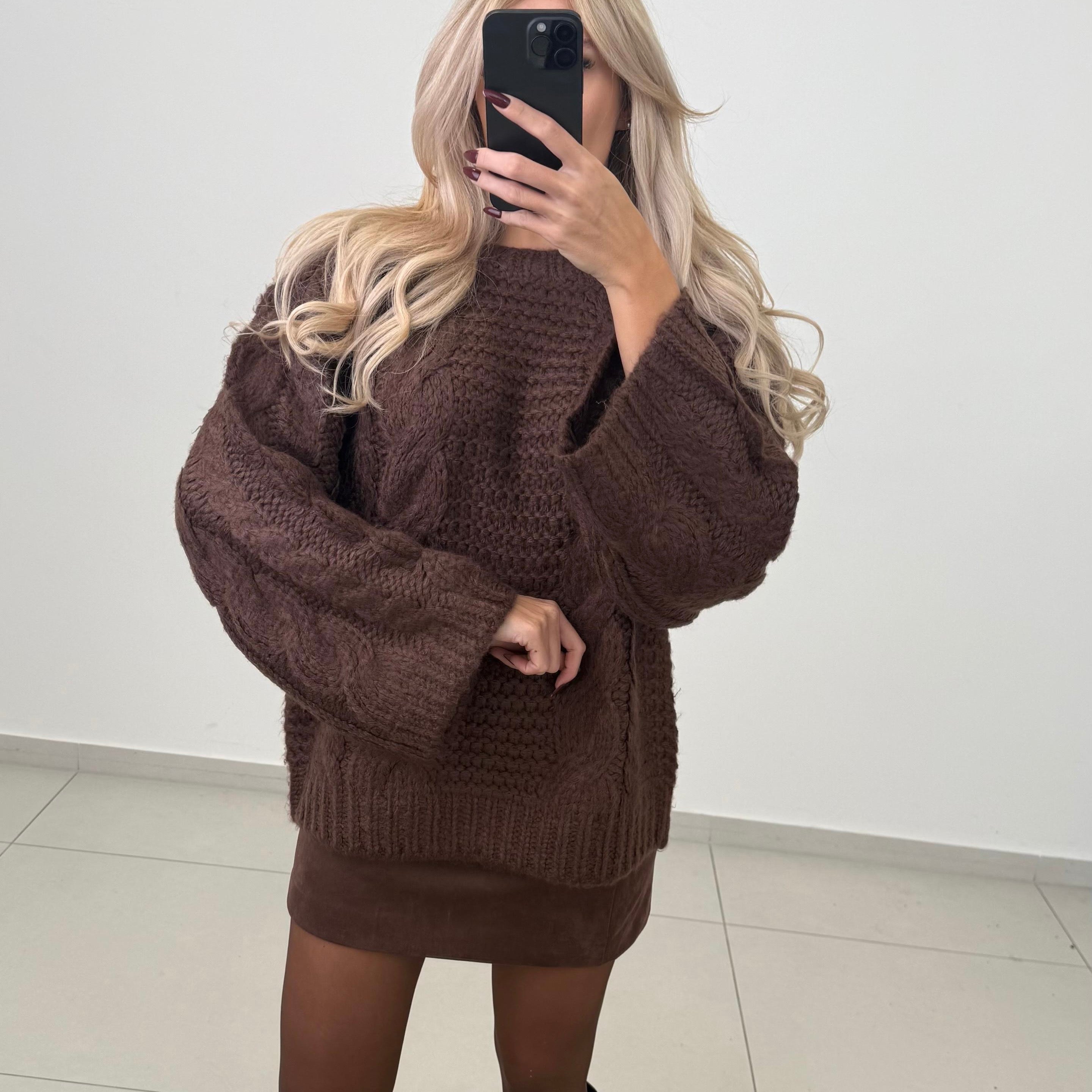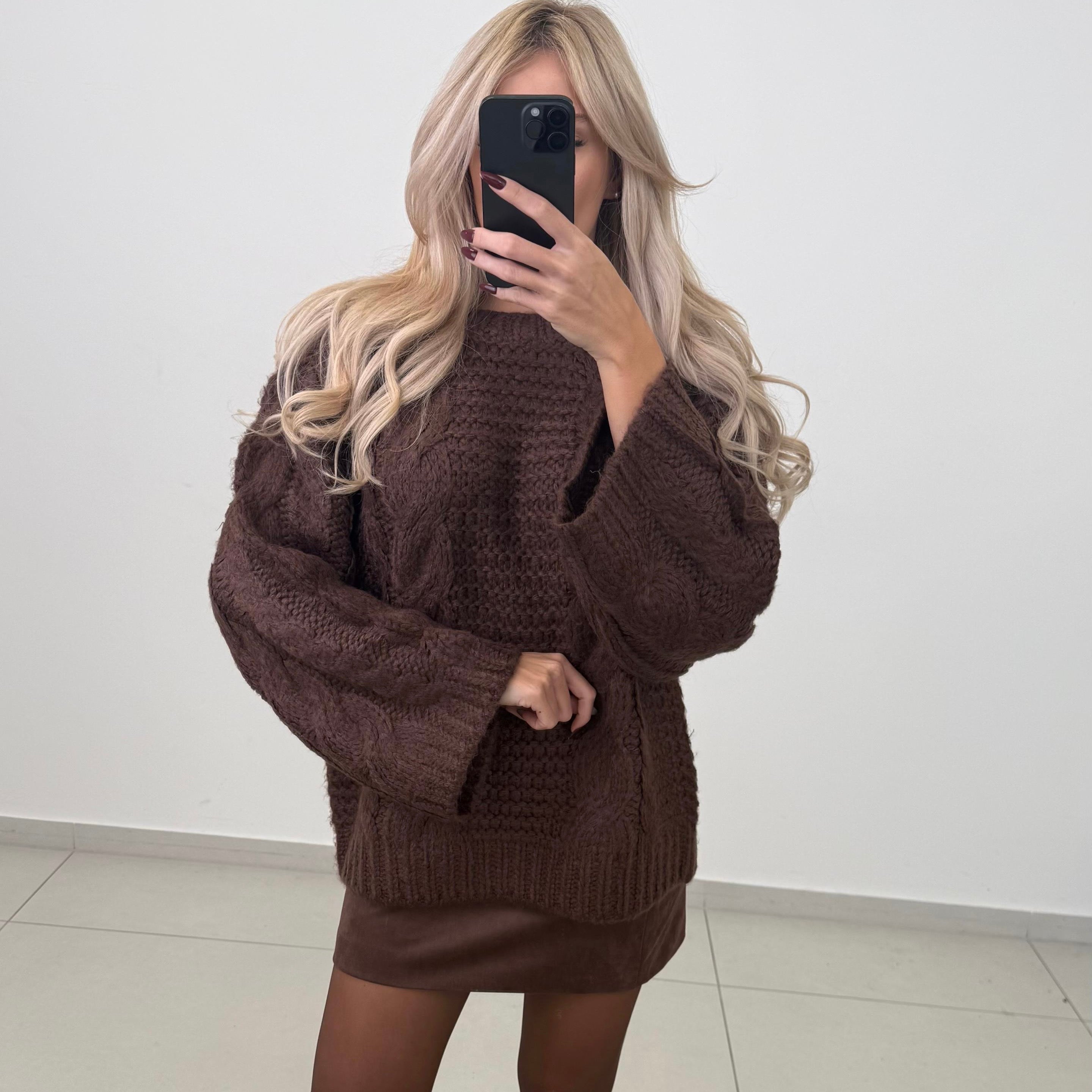 Unser Handmade Zopfmuster Pullover ist ein liebevoll von Hand gefertigter Strickpullover mit aufwendig gearbeiteten Rosen-Details.