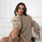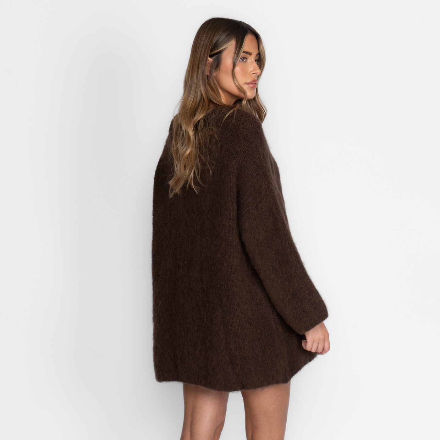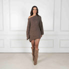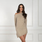 Fühlt sich an wie eine sanfte Umarmung – und sieht genauso gut aus. Unser kuscheliger Off-Shoulder-Pulloverkleid umspielt deine Schultern mit Leichtigkeit und verleiht dir diesen mühelos femininen Look. Die oversized Ärmel bringen Volumen und Stil, während das ultra-softe Strickmaterial dich sofort entspannen lässt.