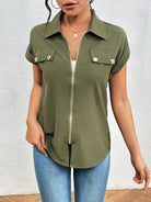 Alfano - Elegant Short Sleeve Blouse With Zipper