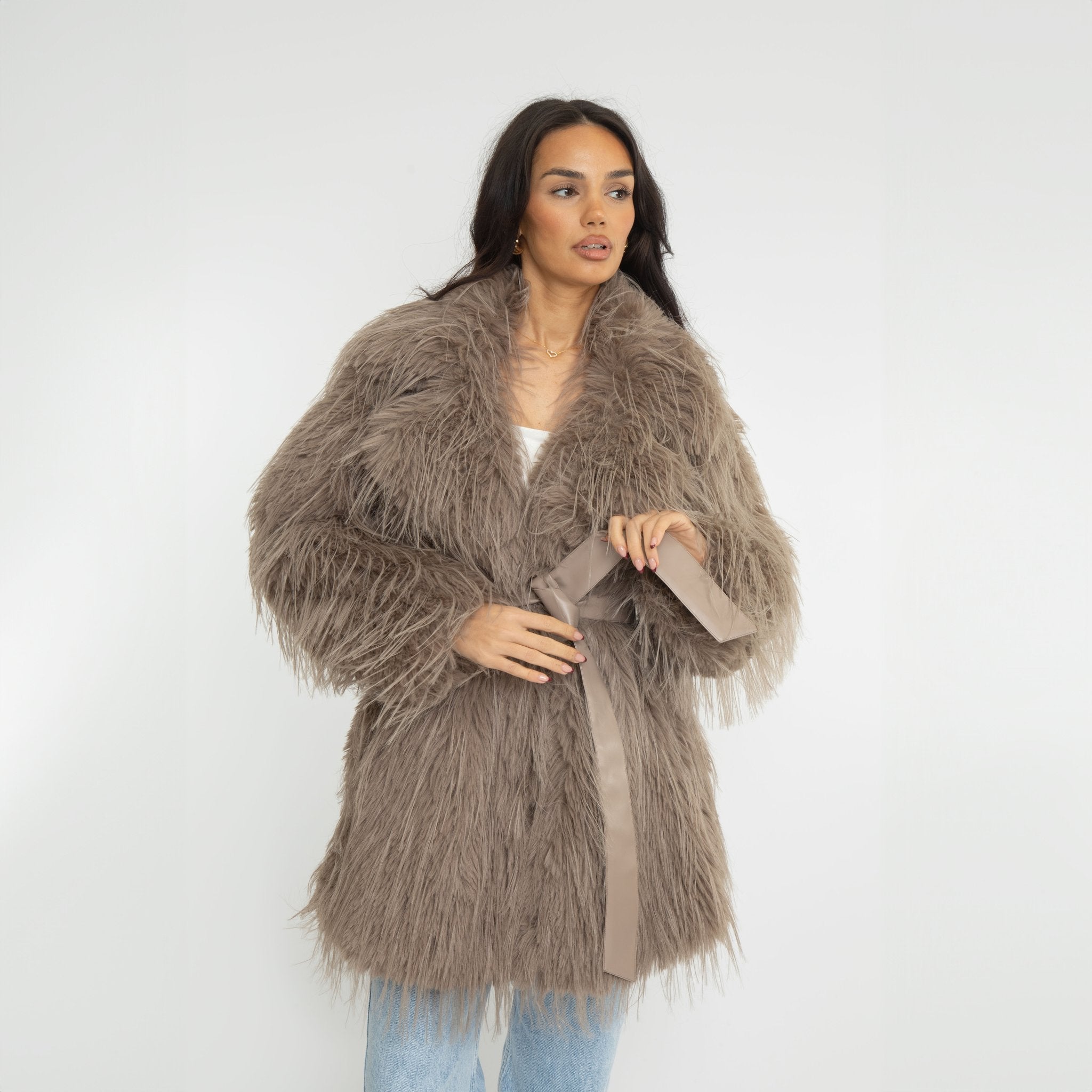 Entdecke den ultimativen Winterluxus mit unserer flauschigen Kunstfelljacke. Der voluminöse, weiche Fell-Look verleiht dir eine stilvolle Eleganz und hält dich an kalten Tagen kuschelig warm. Mit ihrem hochwertigen Kunstfell und der modernen Silhouette ist sie der perfekte Begleiter für elegante Auftritte oder entspannte Wintertage.