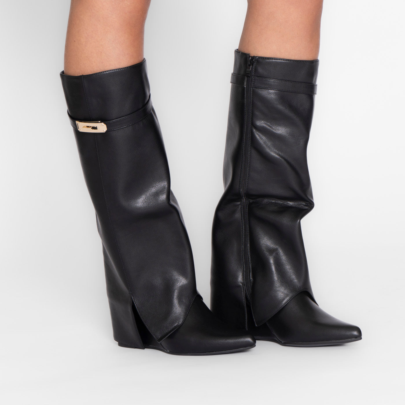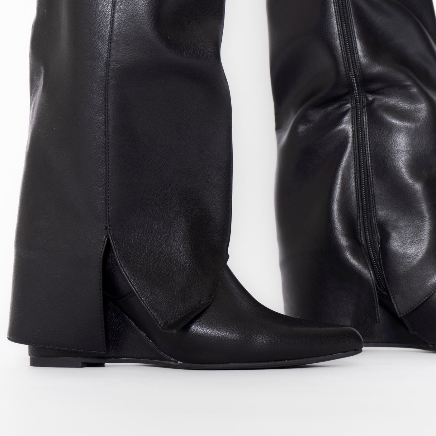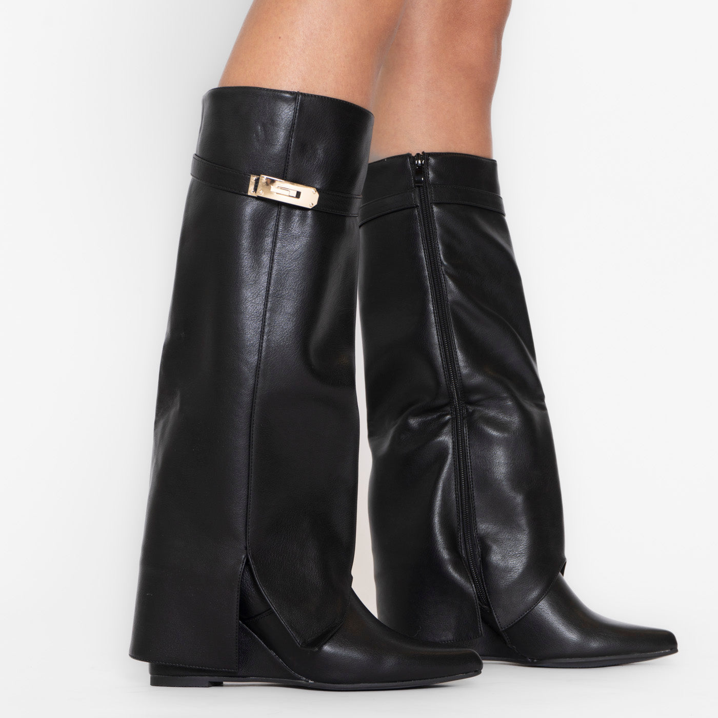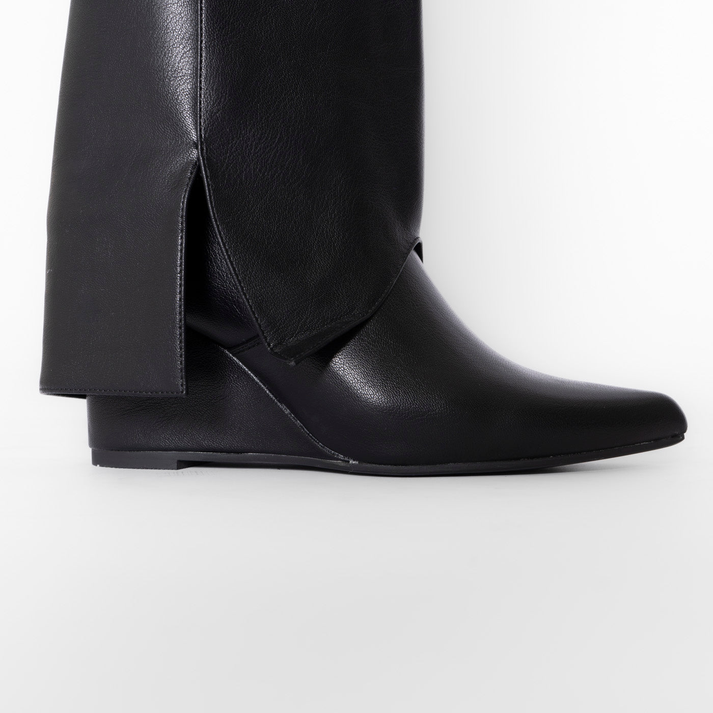 Unsere Icon Muse Keilstiefel sind dein neues Fashion-Statement für Herbst und Winter. Der elegante Keilabsatz sorgt für einen bequemen, femininen Look, während die spitze Silhouette Ihre Beine optisch verlängert.