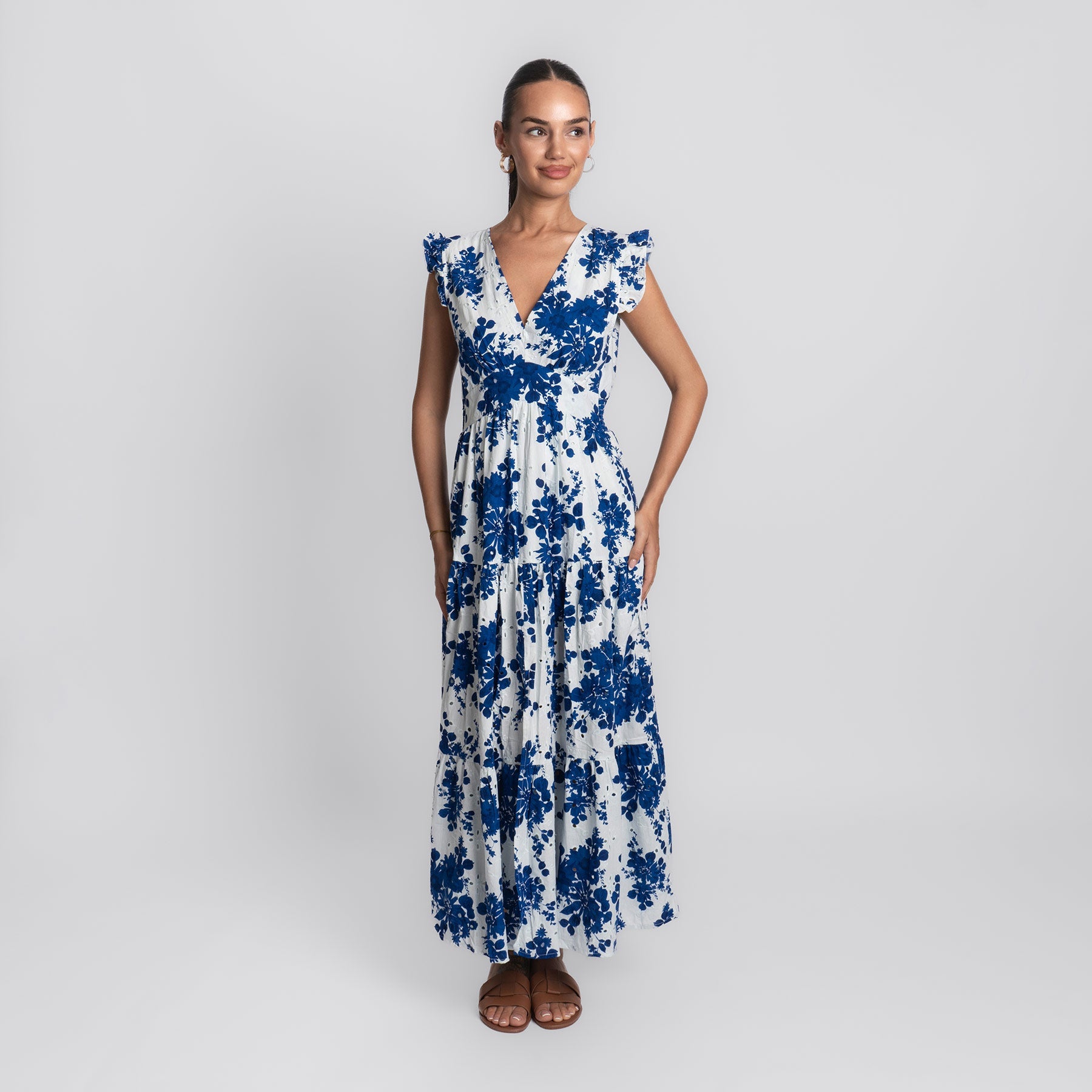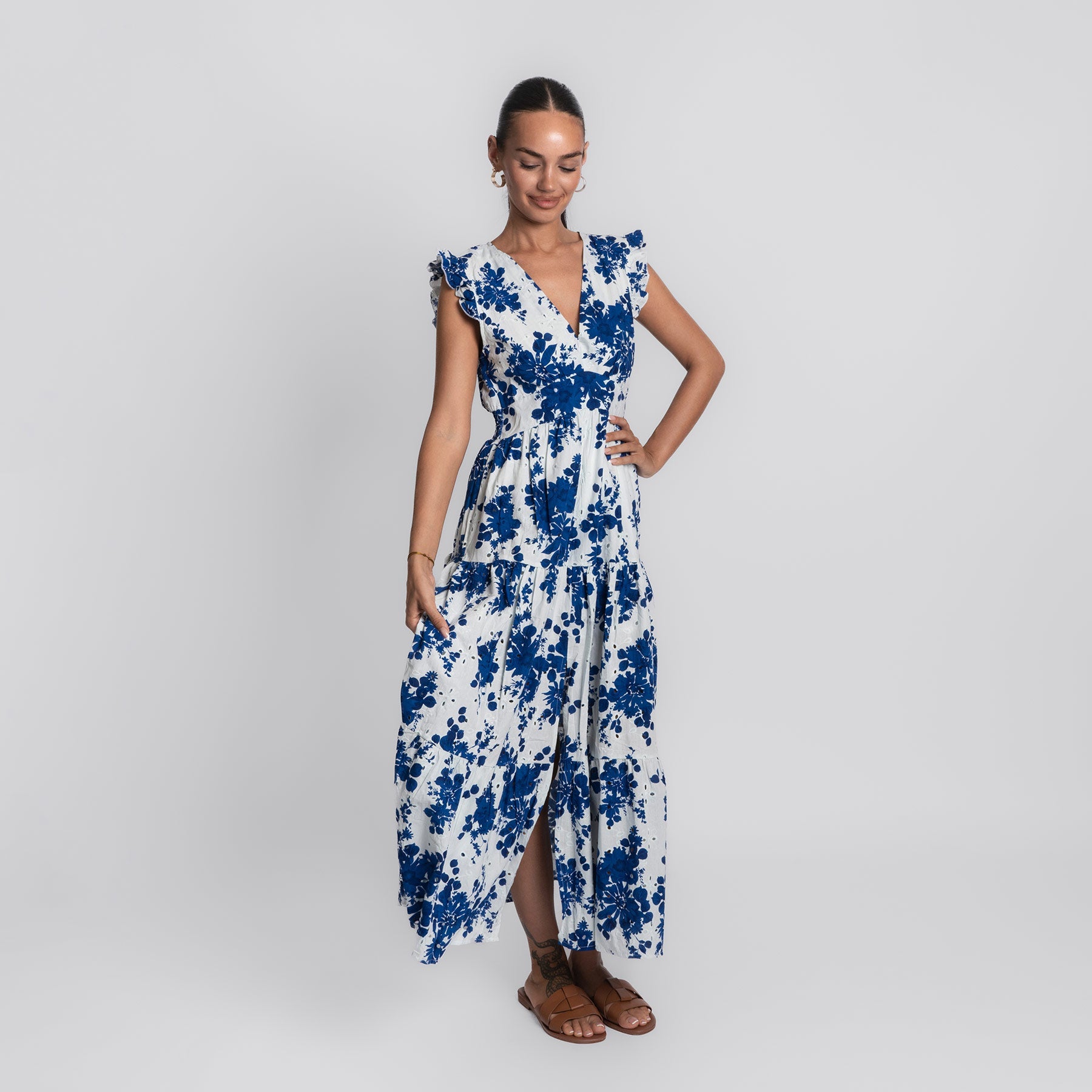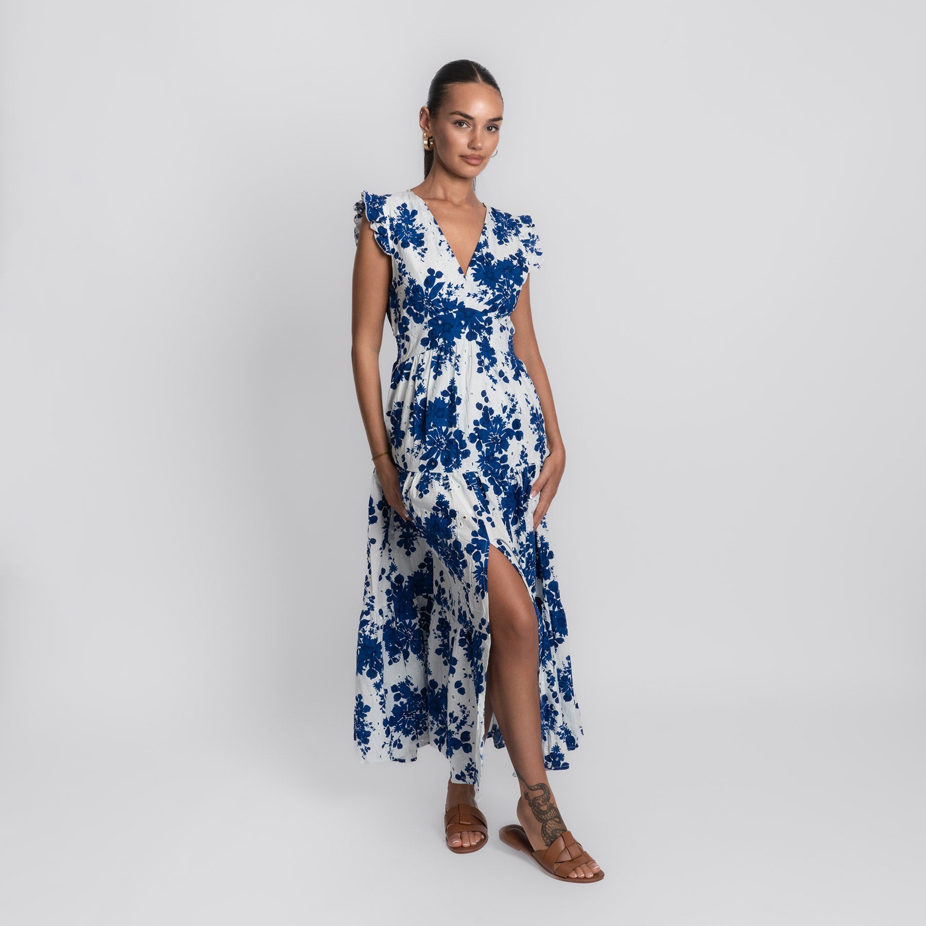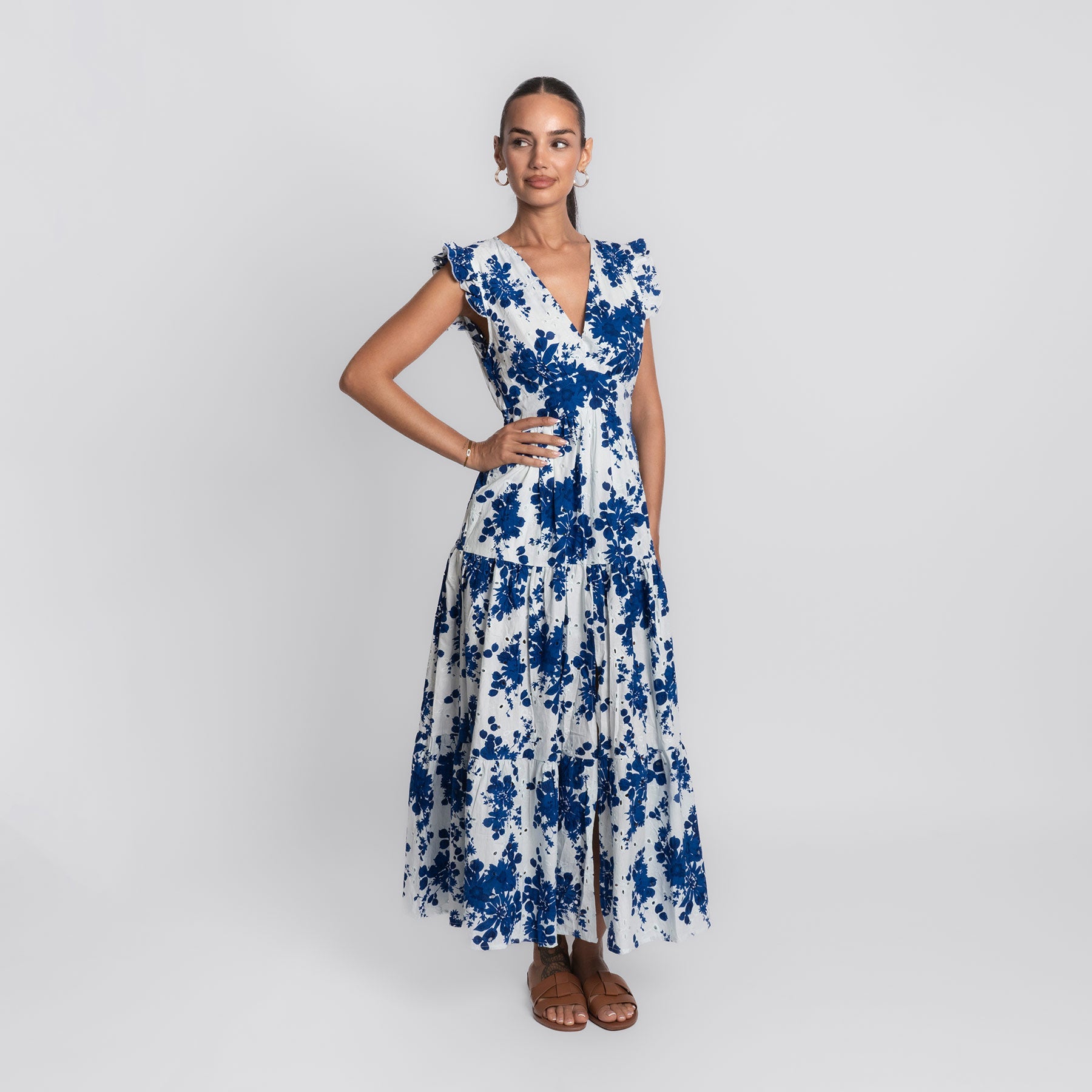 Ein Hauch von Saint-Tropez – das Jardin Bleu Dress versprüht pure Côte-d’Azur-Eleganz. Der intensive Blau-Weiß-Kontrast erinnert an blühende Sommergärten der Provence, die charmanten Fensterläden in Saint-Tropez und an laue Abende mit Blick auf das Mittelmeer.