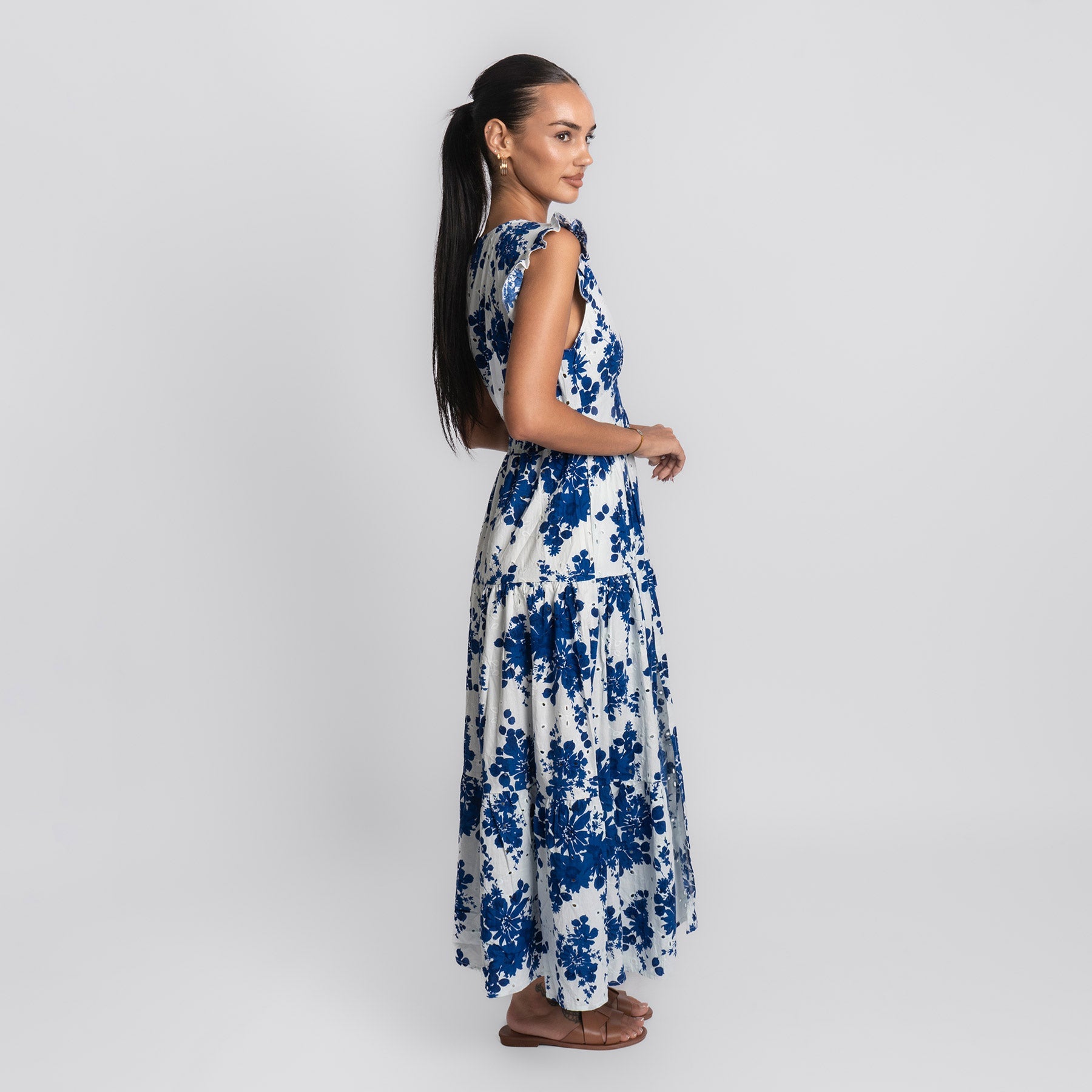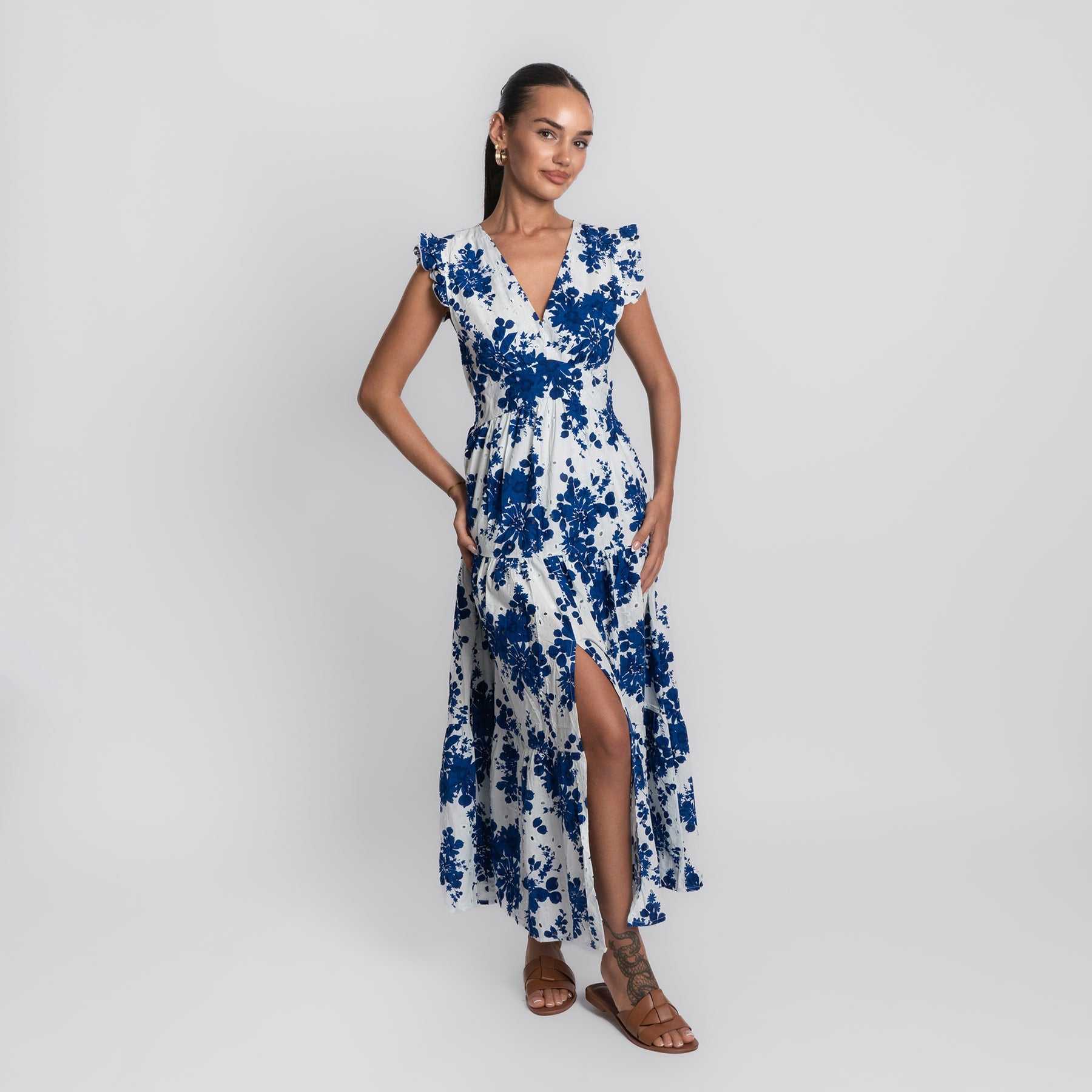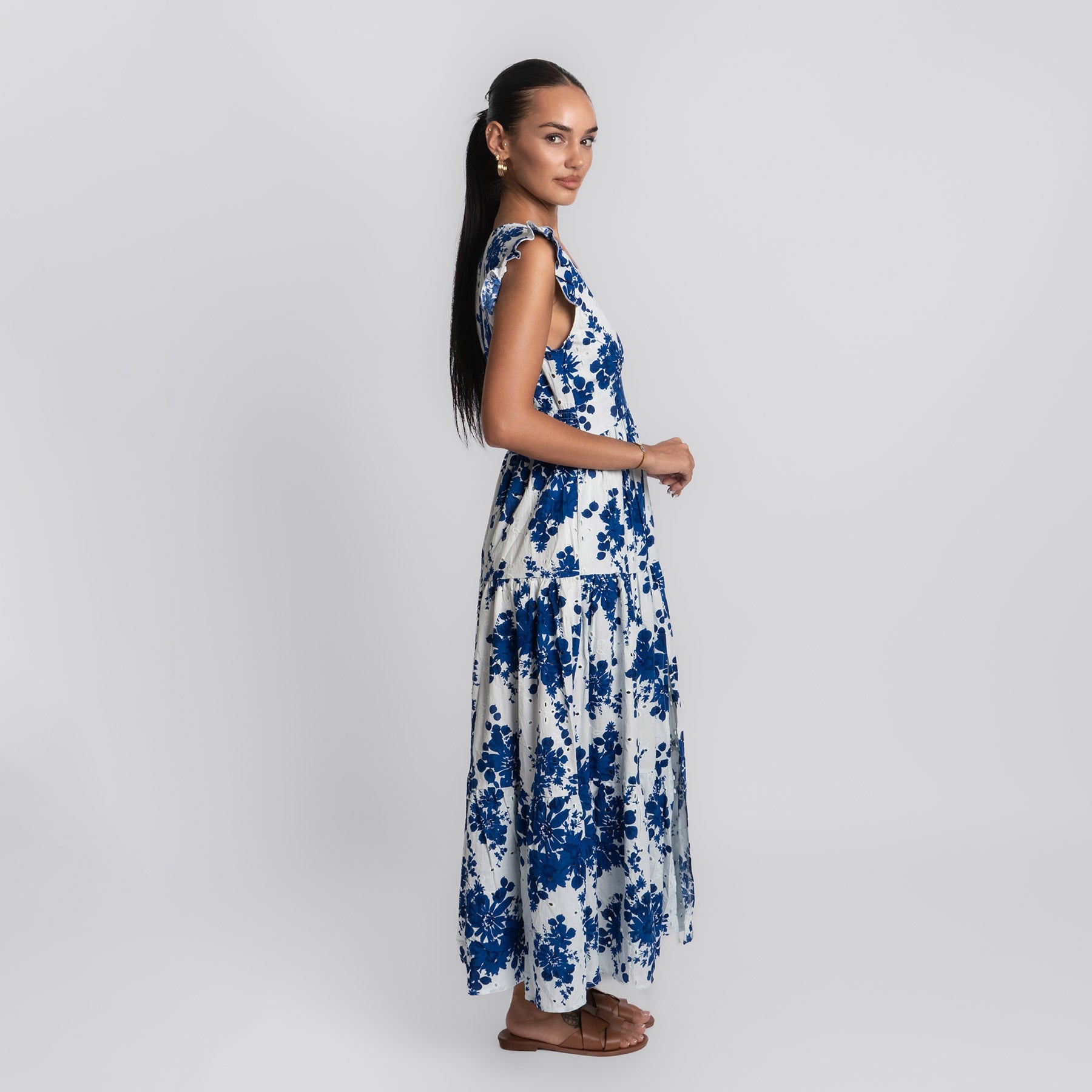 Ein Hauch von Saint-Tropez – das Jardin Bleu Dress versprüht pure Côte-d’Azur-Eleganz. Der intensive Blau-Weiß-Kontrast erinnert an blühende Sommergärten der Provence, die charmanten Fensterläden in Saint-Tropez und an laue Abende mit Blick auf das Mittelmeer.