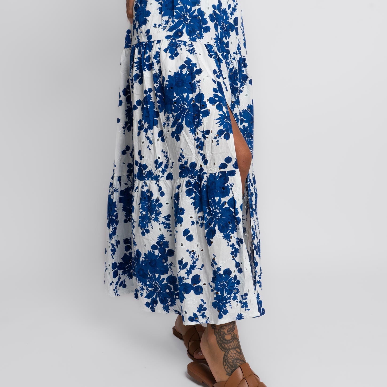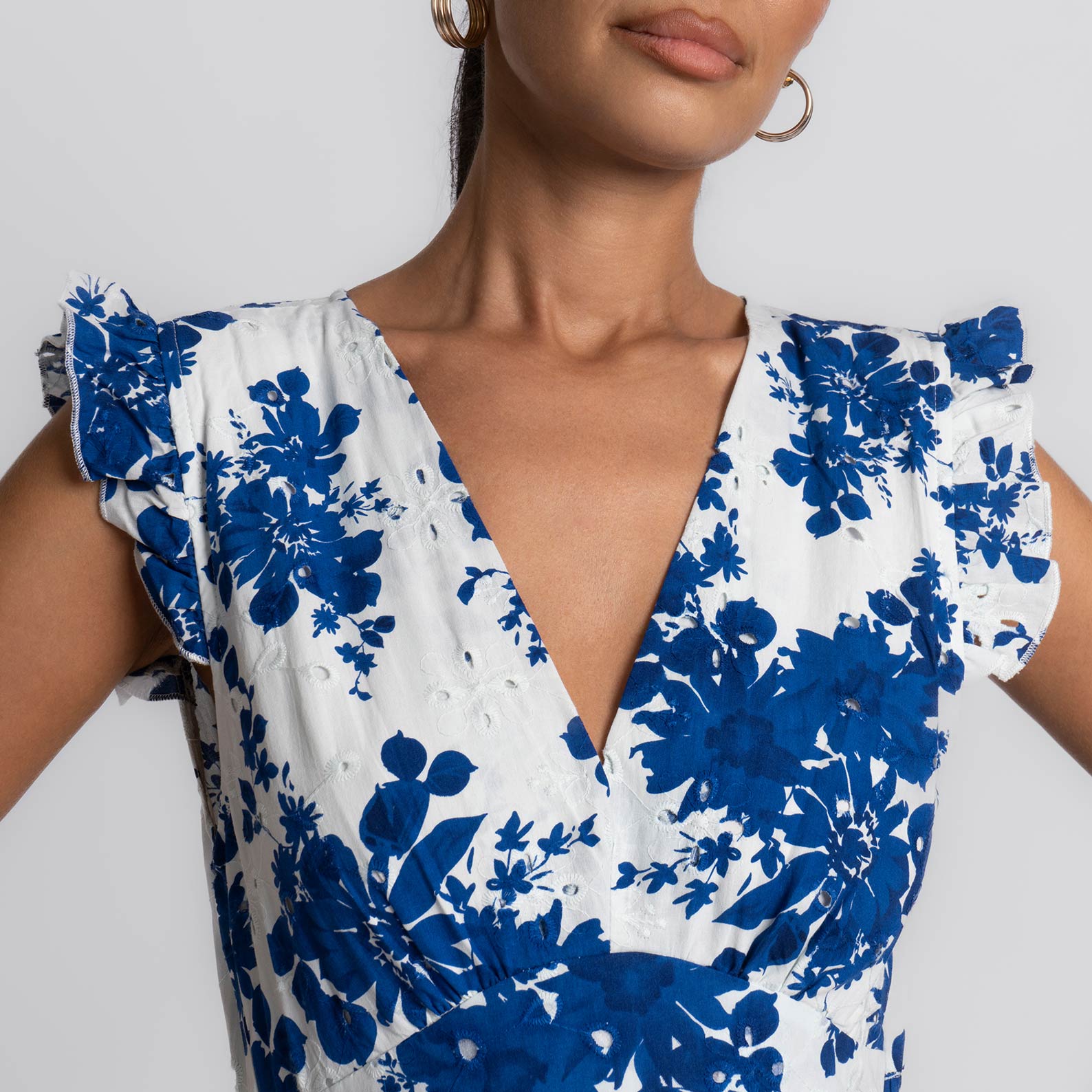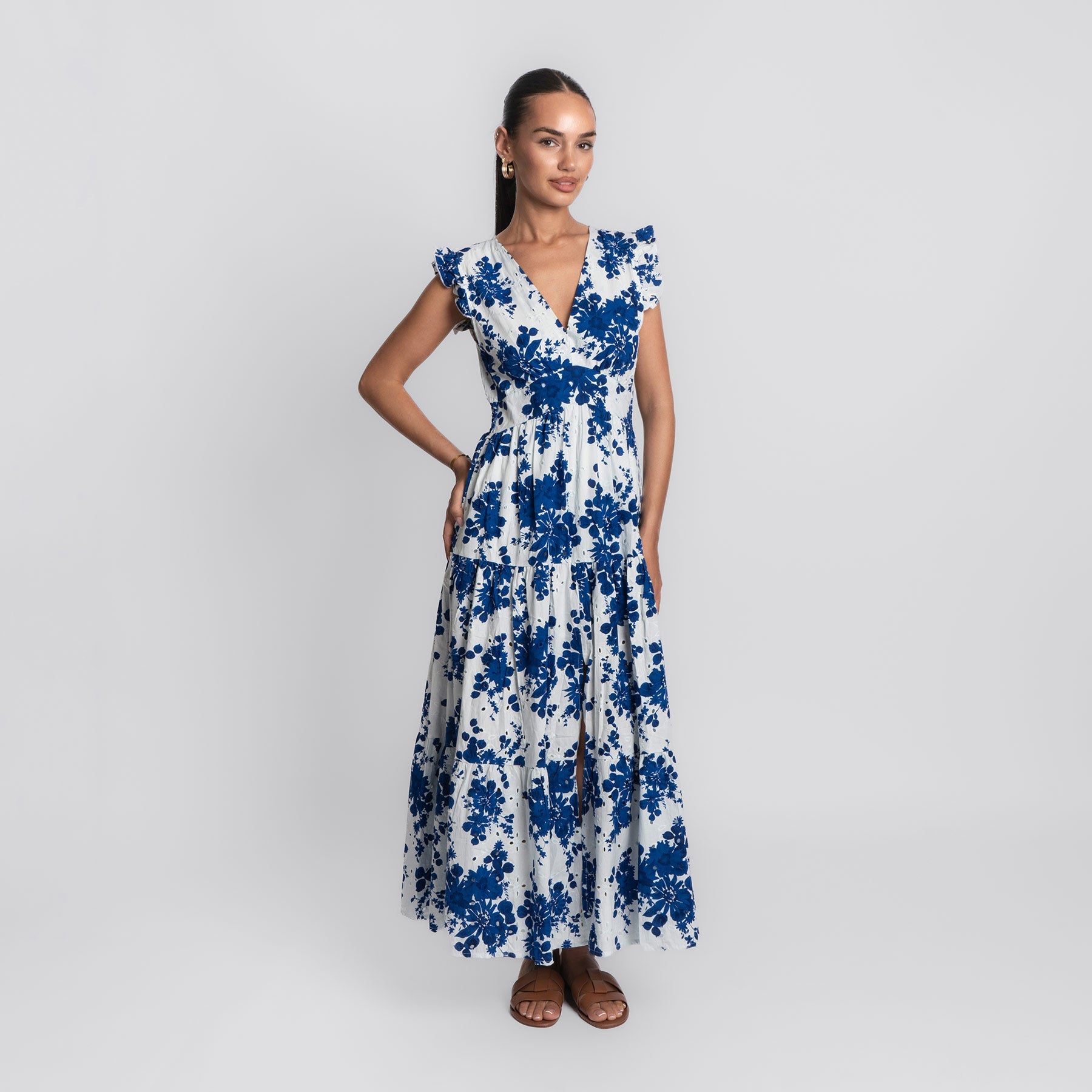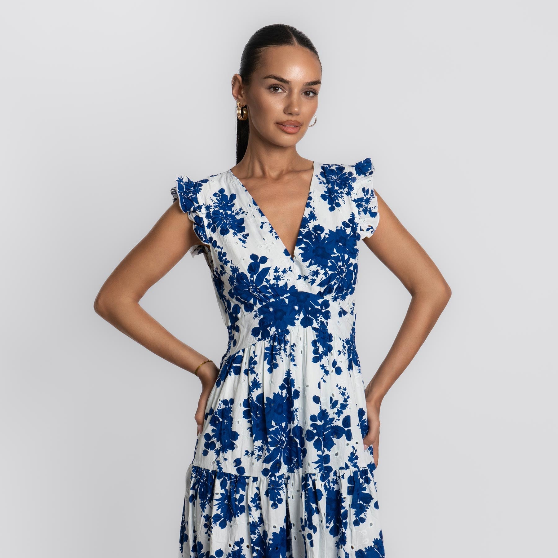 Ein Hauch von Saint-Tropez – das Jardin Bleu Dress versprüht pure Côte-d’Azur-Eleganz. Der intensive Blau-Weiß-Kontrast erinnert an blühende Sommergärten der Provence, die charmanten Fensterläden in Saint-Tropez und an laue Abende mit Blick auf das Mittelmeer.