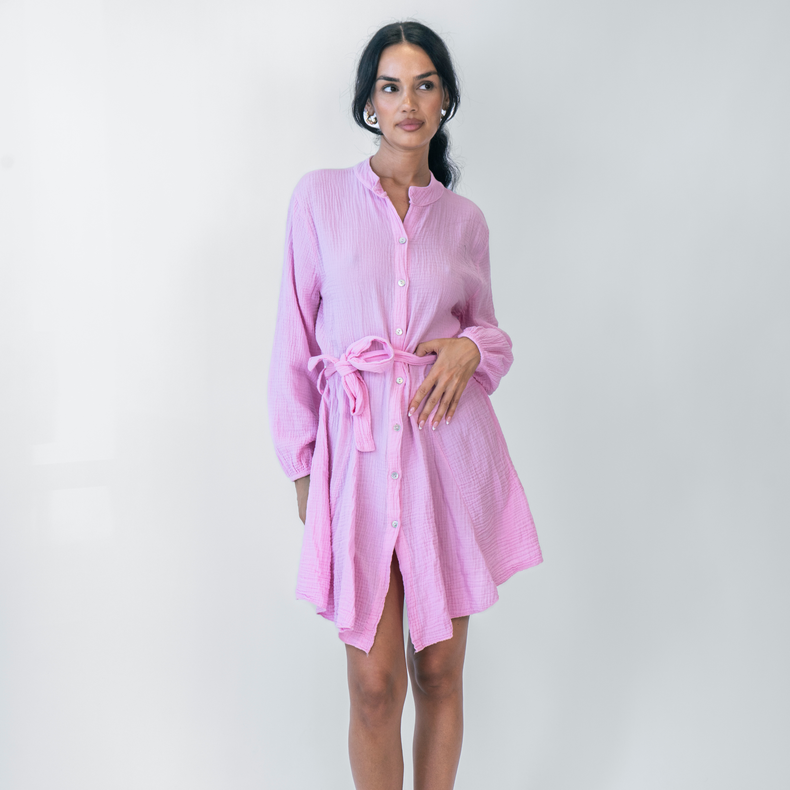 Das Musselin Dress überzeugt mit seinem weich strukturierten Baumwoll-Musselin und einem Schnitt, der Komfort und Stil vereint. Die durchgehende Knopfleiste verleiht dem Kleid einen zeitlosen Shirt-Dress-Look, während der Taillengürtel zum Binden deine Figur dezent in Szene setzt. Der lockere Fit sorgt für ein luftiges Tragegefühl – ideal für warme Tage oder entspannte Alltagslooks.