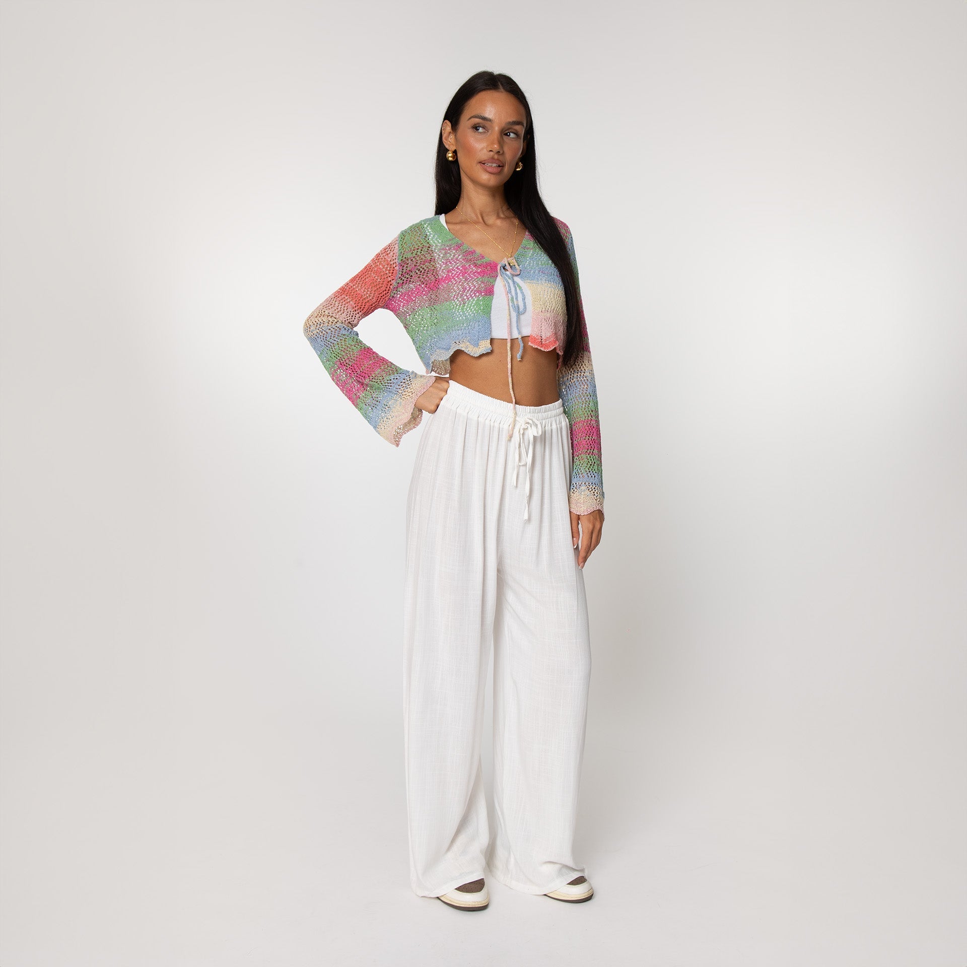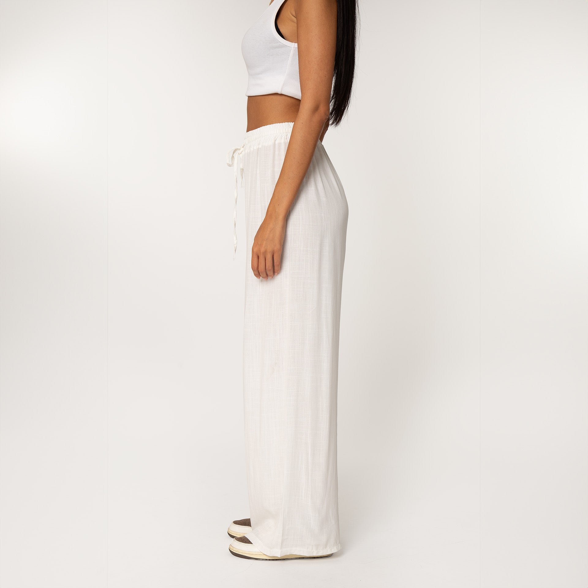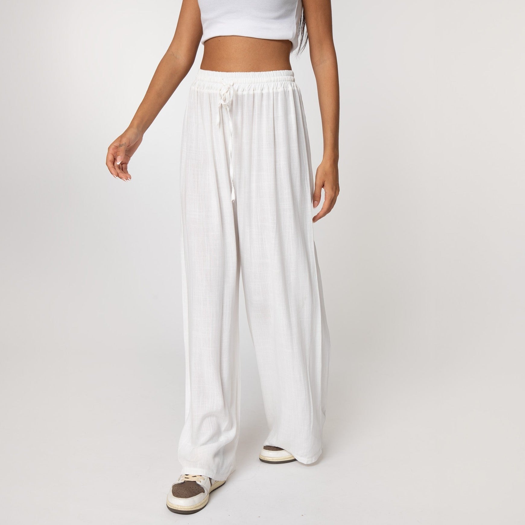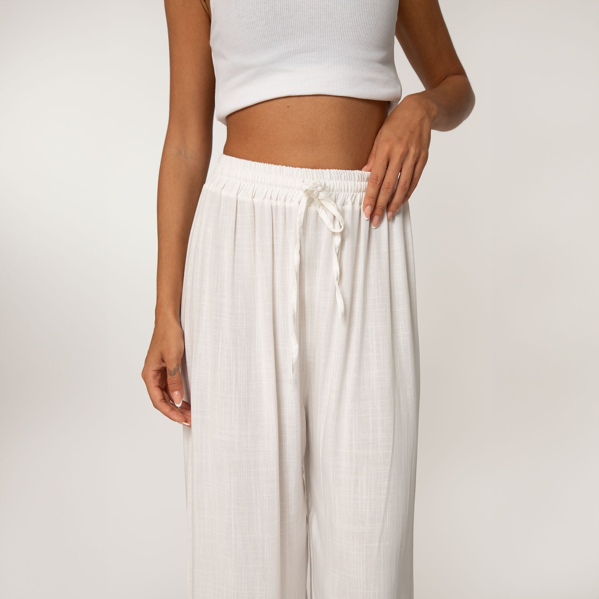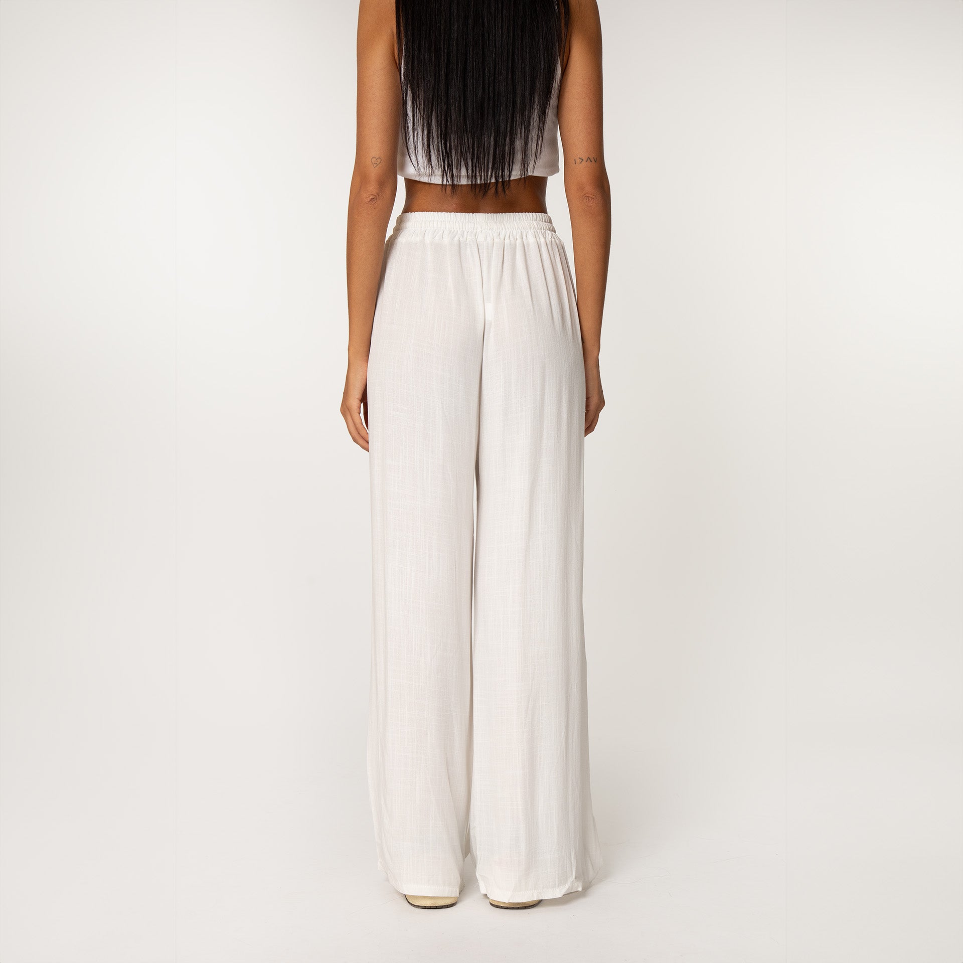 Produktbeschreibung: Unsere elegante weiße Palazzo-Hose bietet leichten, atmungsaktiven Komfort und einen stilvollen Look. Der elastische Bund mit Kordelzug sorgt für eine perfekte Passform, während der weite Schnitt maximale Bewegungsfreiheit ermöglicht. Diese vielseitig kombinierbare Hose ist ideal für entspannte Sommertage und -nächte. Pflegeleicht und maschinenwaschbar.