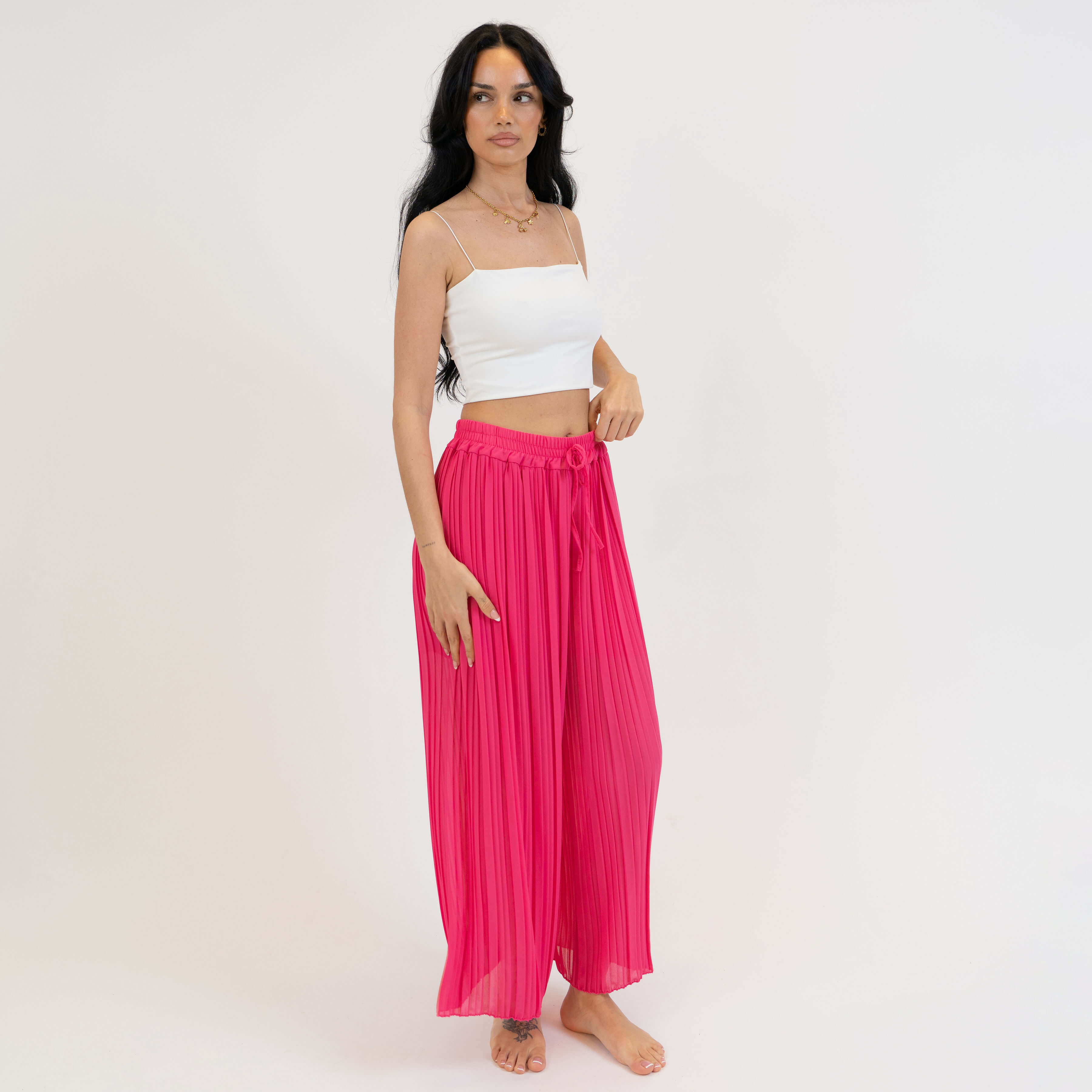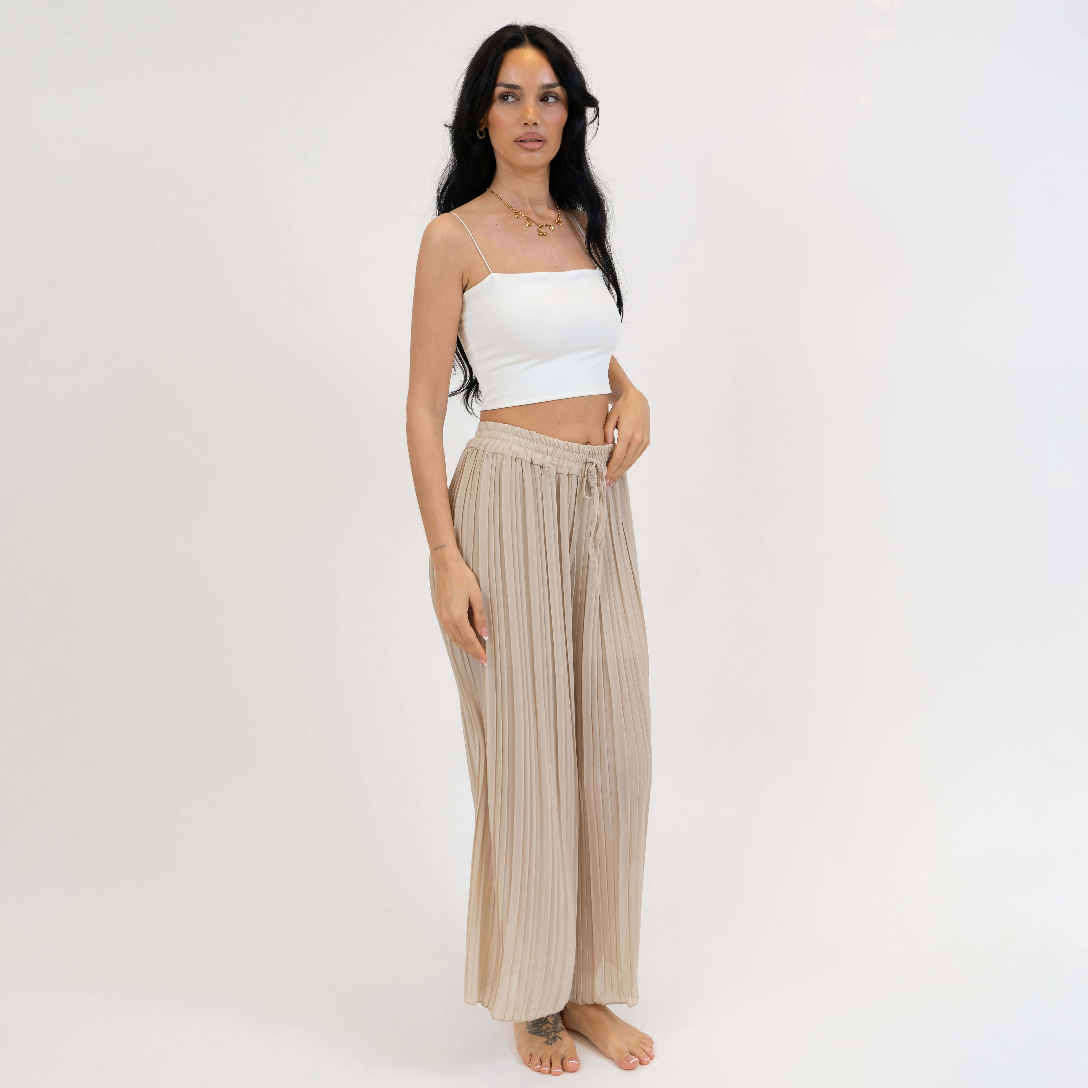 Luftig, leicht, lässig – unsere Plissee Hose ist der perfekte Mix aus Eleganz und Komfort. Die weich fallenden Plisseefalten verleihen der Hose eine feminine Silhouette, während das elastische Bündchen mit Bindeband für einen bequemen Sitz sorgt.