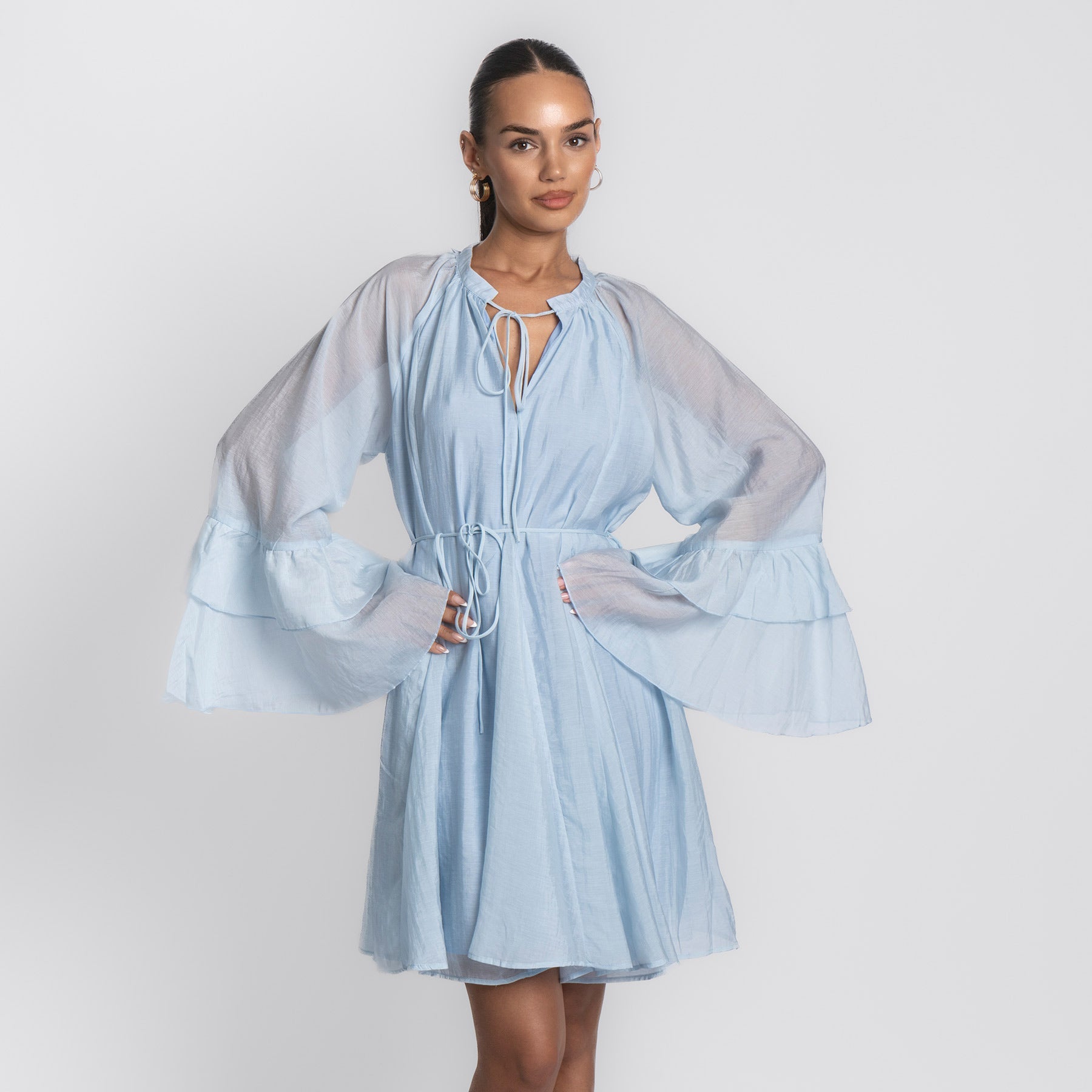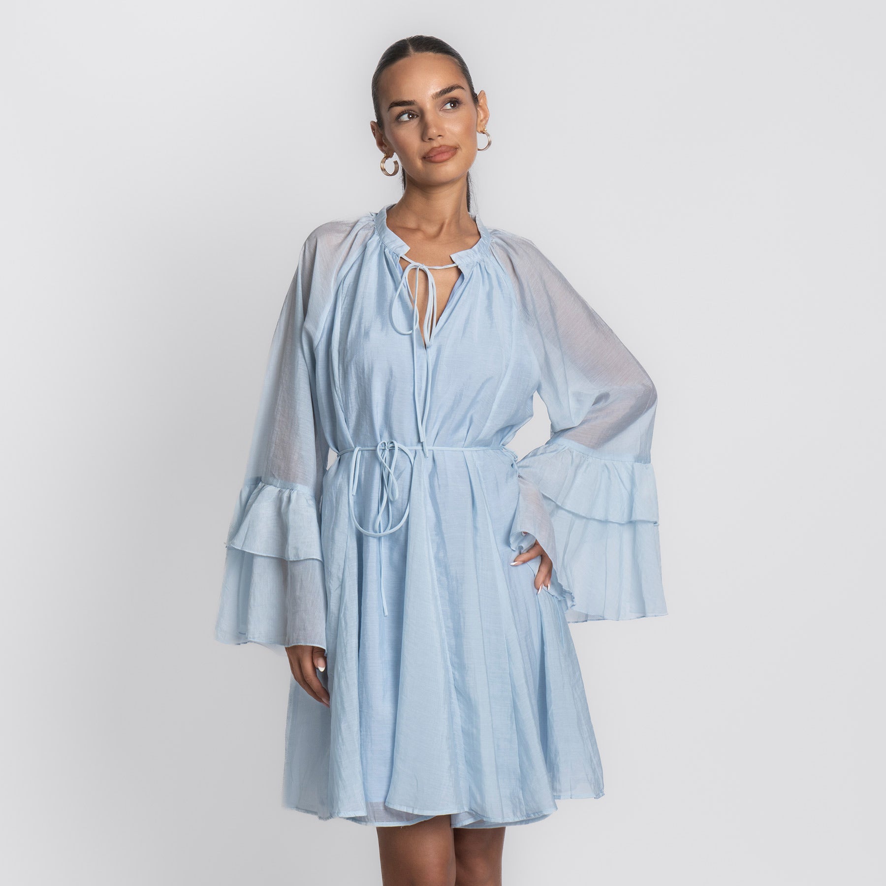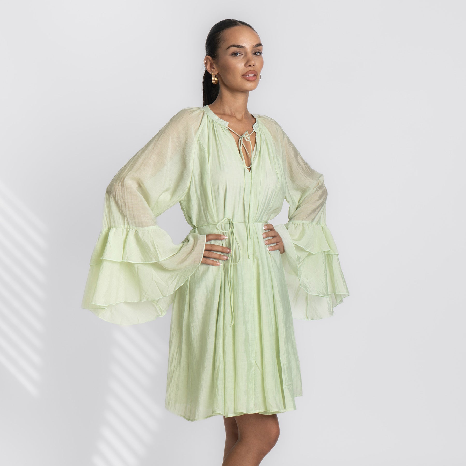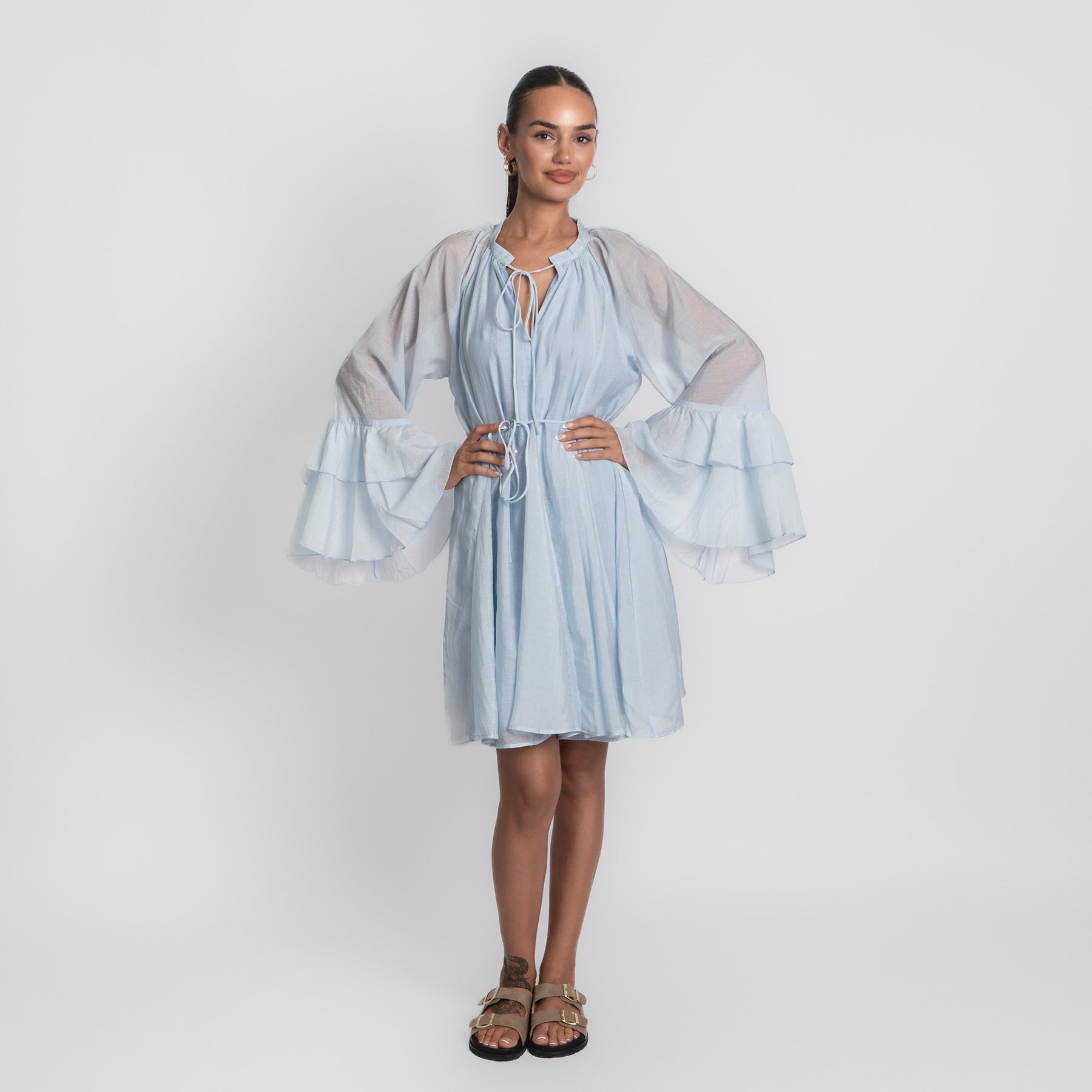 Ein Kleid wie ein Sommertag: Das Volana Dress vereint feminine Leichtigkeit mit entspanntem Komfort. Der fließende Maxischnitt, die zarten Spaghettiträger und die sanft fallenden Stufen machen es zu deinem neuen Go-to für warme Tage – ob am Meer, in der City oder auf dem Balkon bei Sonnenuntergang.